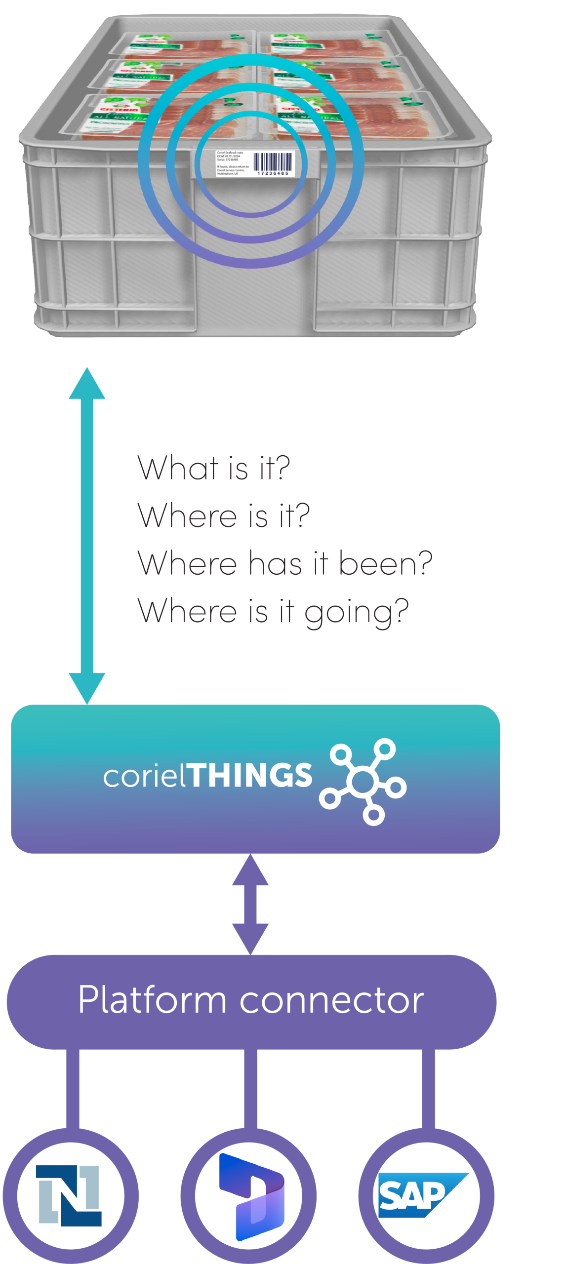 corielTHINGS is a completely connected platform, allowing you to integrate your ERP, WMS or bespoke systems via simple web calls.
